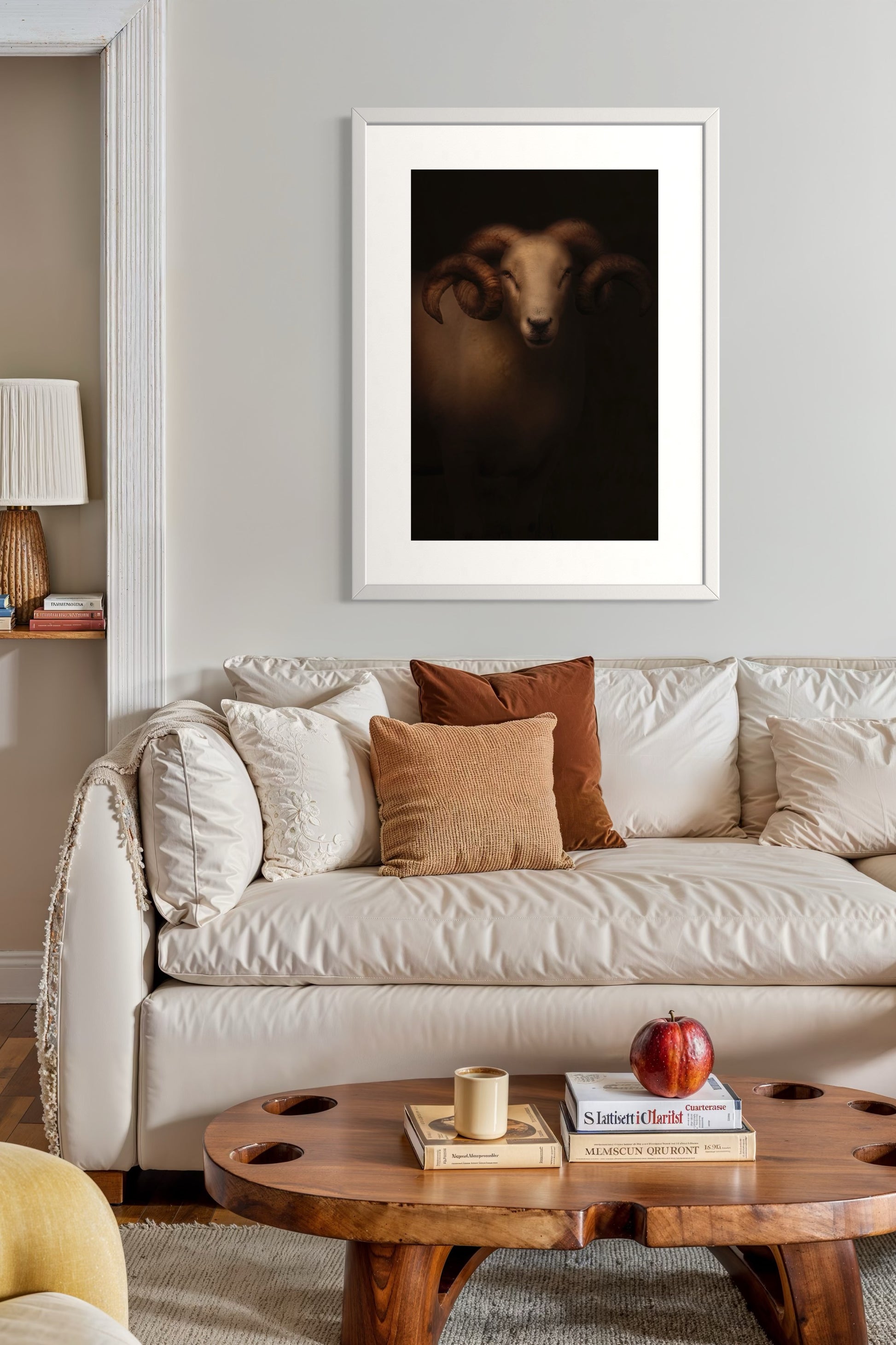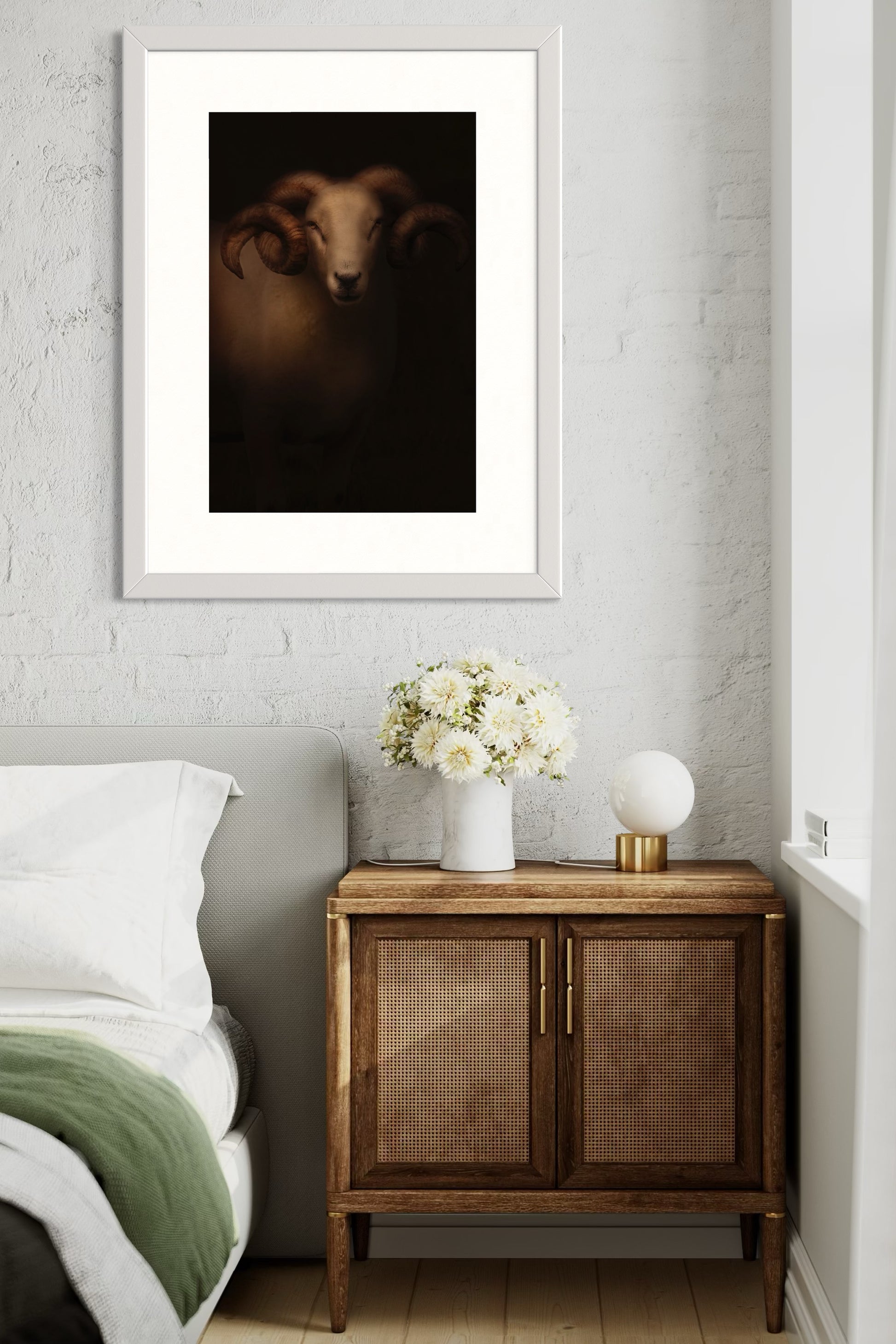 Bring the presence of the Wiltshire Horn Ram into your space with a large-format, limited edition print.